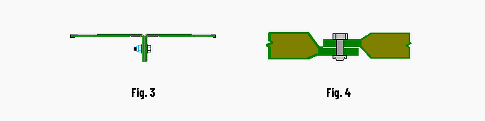 The hardware for the perpendicular joint is internal to the radome. In contrast from Figure 4, the parallel lap joint hardware punctures the radome surface and is both external and internal to the radome. Parallel lap joint hardware protrusions collect dirt and fungus and allows corrosion to attack metals exposed to the outside environment. From a framework shadow point of view, the perpendicular joint has a very narrow cross section. This contrasts significantly with the large lap joint cross section shadowing the dish reflector. Due to its smaller width, the perpendicular joint has a scattering width 8 times smaller than its parallel lap joint counterpart.