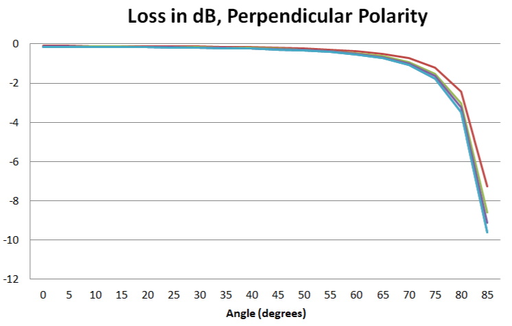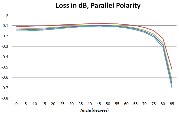 Output of our analysis tool: RF loss in dB vs angle of incidence